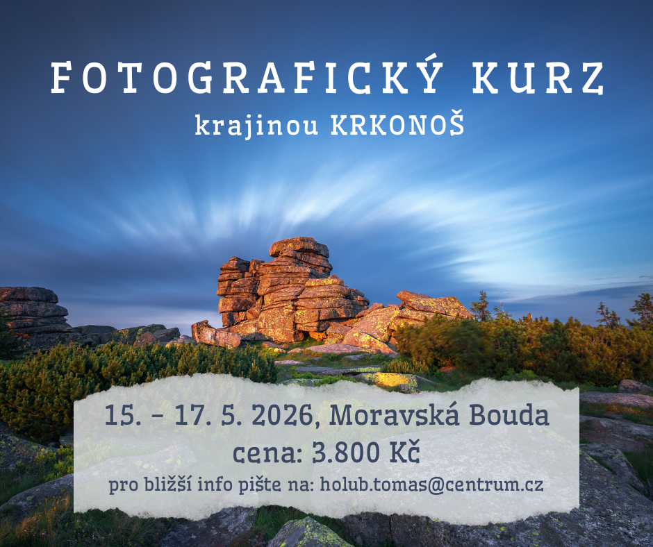 Workshop "Krkonoše - krajinářská fotografie" je pořádán pod mým vedením. Centrem víkendových fotovýprav do míst okouzlujících výhledů i skrytých zákoutí Krkonoš bude Moravská bouda, nacházející se v hřebenové části hor.